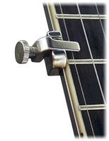 Originally, our fifth string capo bar was eight inches long, and attached to the banjo neck with three mounting screws. A few years ago we remodeled the bar, a change which I'd long considered. I personally never capo the fifth string any higher than the tenth fret (this would go along with the regular capo being at the fifth fret). So for my own banjo, I made a custom bar which was much shorter (5.75"). This shorter bar is now our standard size. Besides taking up less space on the neck (for you fellow thumb-wrappers), it offers the additional advantage of using only two mounting screws instead of three.