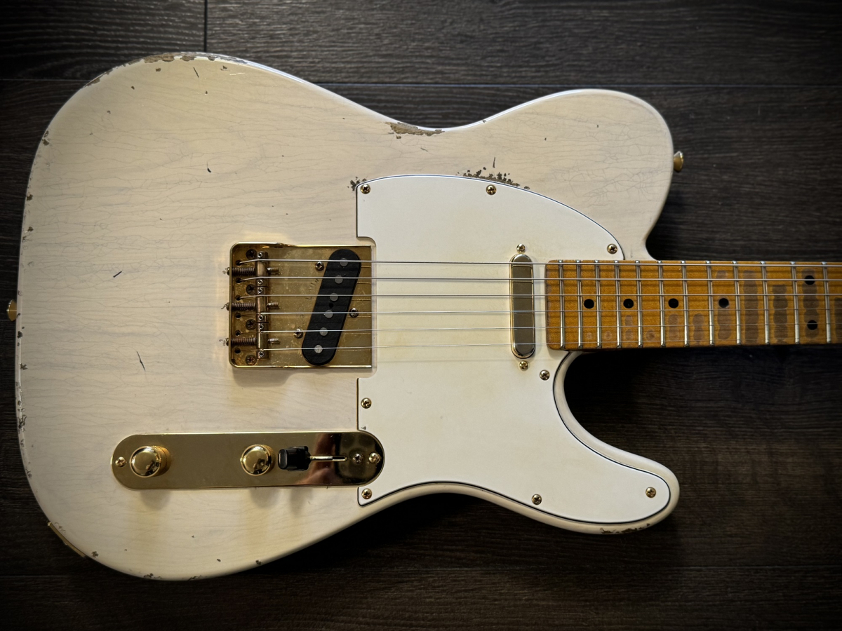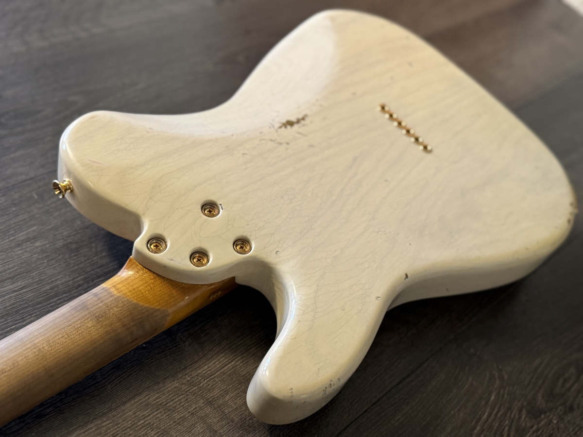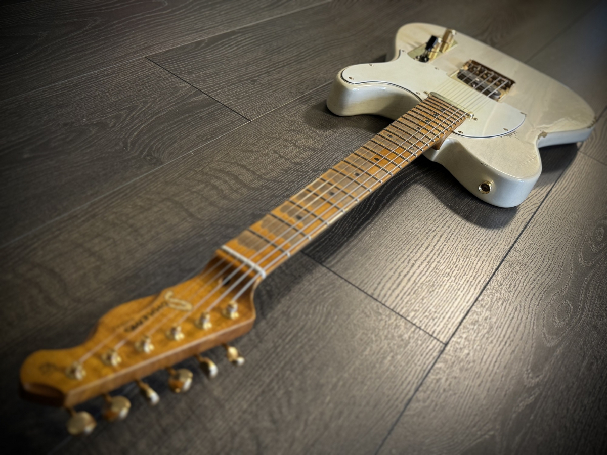 Helt handbyggt instrument, otroligt fin gitarr och med en relicering i absolut världsklass. Även mikrofonerna är lindade av Sonnemo själv. Denna blonda Twangster med guld hardware och en light relic. Passa på och köp ett unikt, svenskbyggt hantverk.