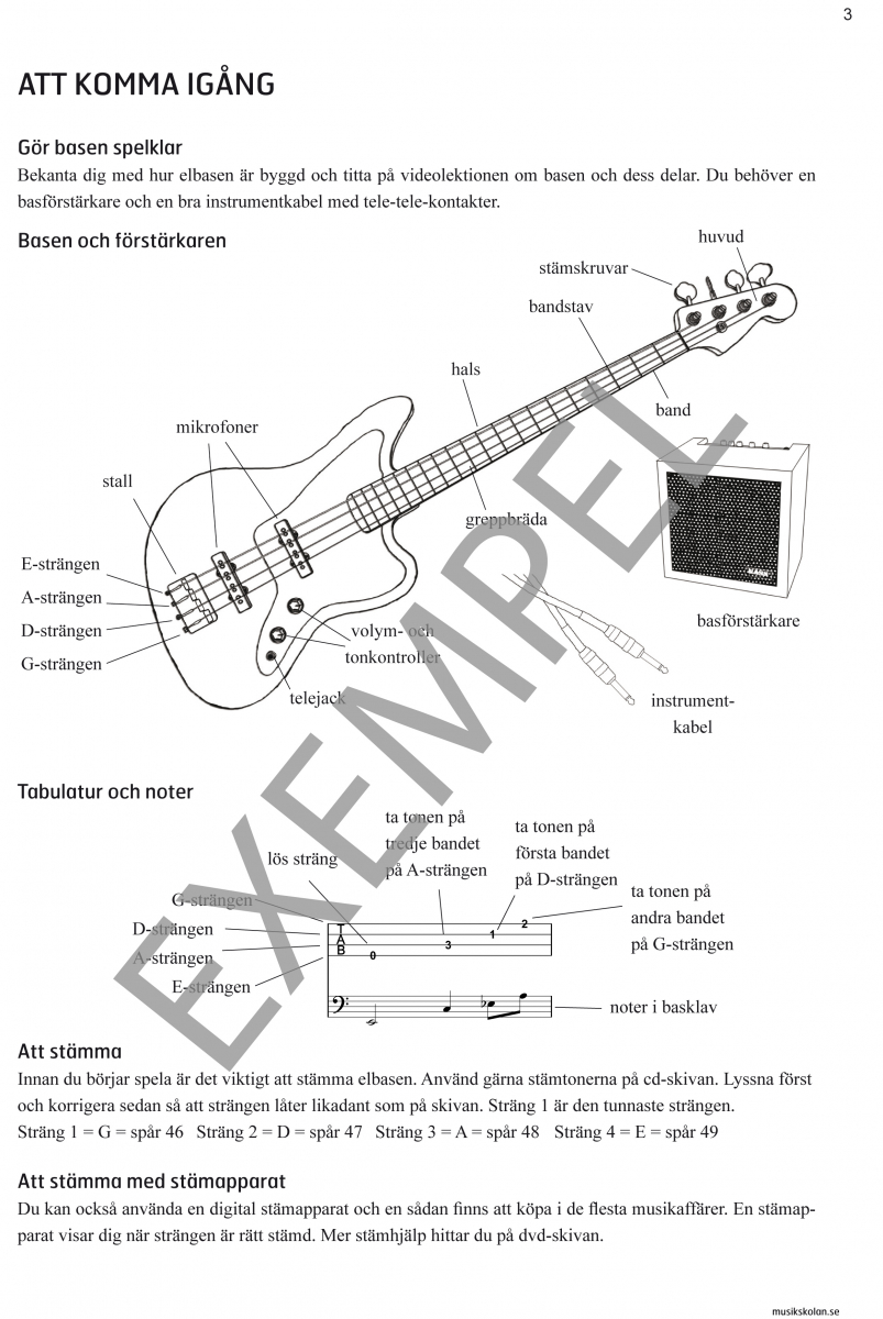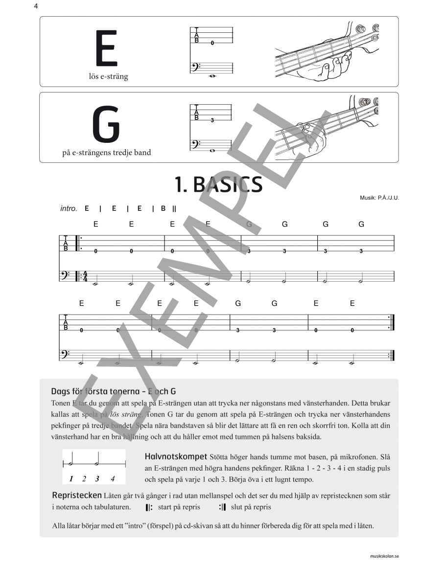 SPELA ELBAS är en nybörjarskola för dig som vill få en bred grund i ditt elbasspel. Materialet vänder sig till nybörjare i alla åldrar som vill lära sig spela på egen hand eller tillsammans med en lärare. Här hittar du låtar som är valda för att du snabbt ska komma i gång med att spela musik i olika stilar. Du får lära dig många användbara komp och basens toner genom en klar och tydlig progression.