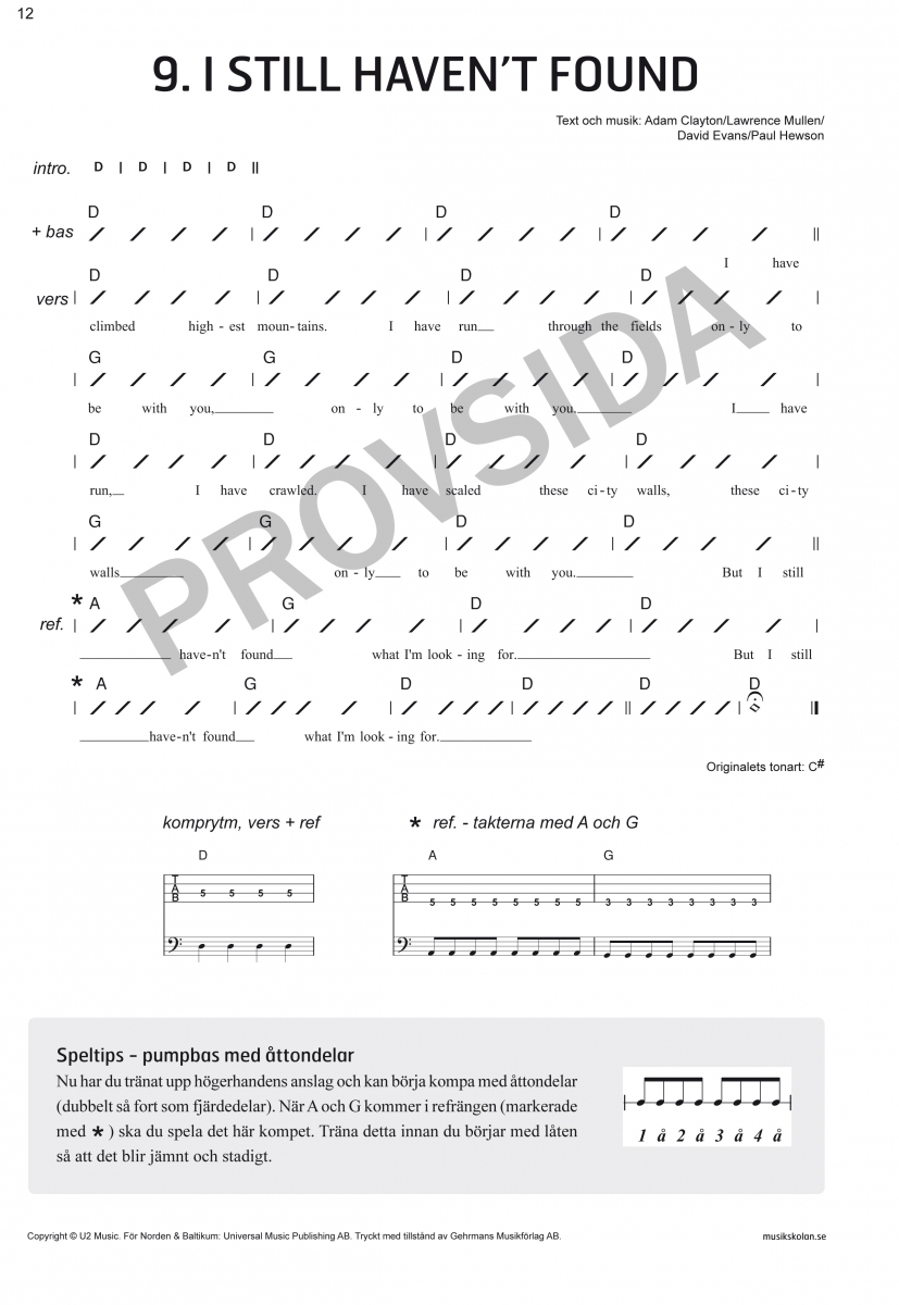 I boken blandas olika sätt att notera låtarna på, precis som i verkligheten. Här finns kompskisser, texter med ackord, melodier med text och ackord, samt tabulatur. Nya toner och komp förklaras tydligt med illustrationer, tabulatur och noter.