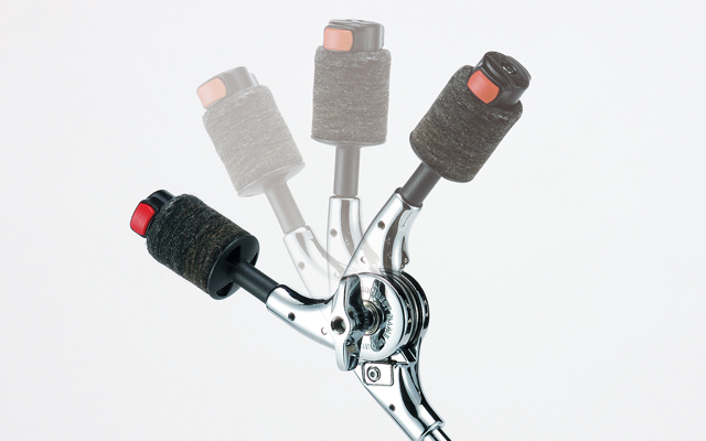 By simply gripping and pressing the two buttons on the both sides, users can attach and remove the Cymbal Mate with just one touch, making cymbals setup/breakdown a snap. Like our standard Cymbal Mate: fine adjustments to the cymbal's swinging motion can be made by rotating the unit.