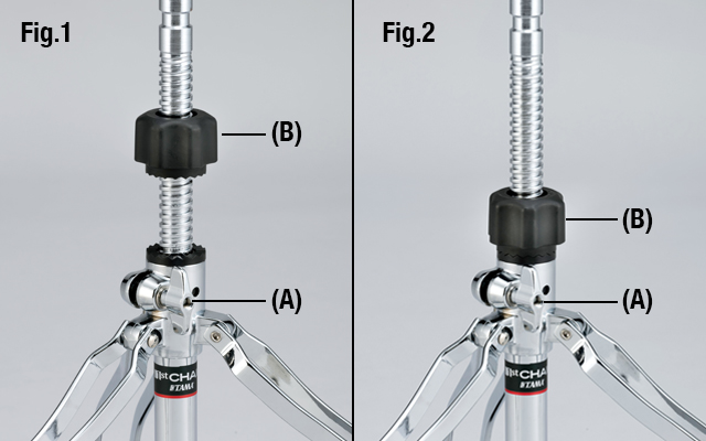 2. Screw the Height lock (B) down to the top of the nylon bushing.