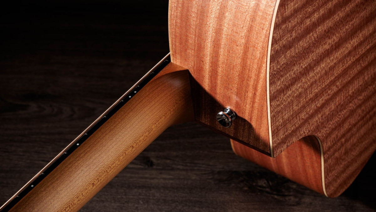 Den fribärande V-Class-röstningsarkitekturen inuti gitarren förbättrar sustain, volym och respons i de lägre frekvenserna, medan den slanka, hälfria halsen i lönn levererar den välbekanta spelkänslan som Taylor är känd för.