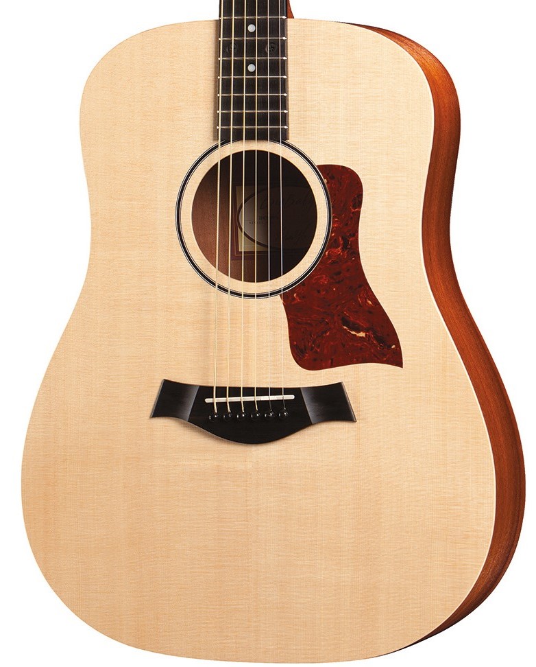 Taylor Big Baby BBT är trots sitt lite mindre format [ 15/16 scale ] en otroligt välljudande gitarr med mycket volym. Liten och smidig men ändå med ett stort akustiskt ljud och mycket volym. Taylors kvalité saknas inte bara för att detta är en av deras billigare modeller, här finns ändå solid Sitka gran i locket, mahogny i sidor/botten och greppbräda av ebenholts.
