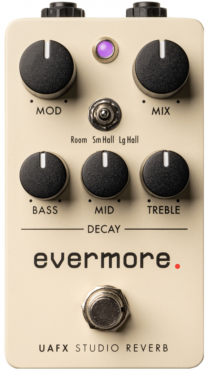 With iconic Room, Small Hall, and Large Hall effects, Evermore gives you the exact spaces of the original studio classic. And the simple, "vintage correct" Treble, Mid, Bass decay lines and Mod control ensure perfectly sculpted ambience, from subtle to experimental.