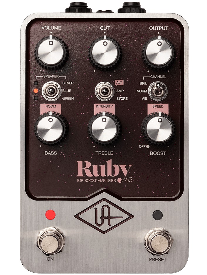 The UAFX Ruby '63 Top Boost Amplifier pedal gives you the quintessential British valve amp beloved by artists and producers for over 60 years, from Queen to U2 to Radiohead.
