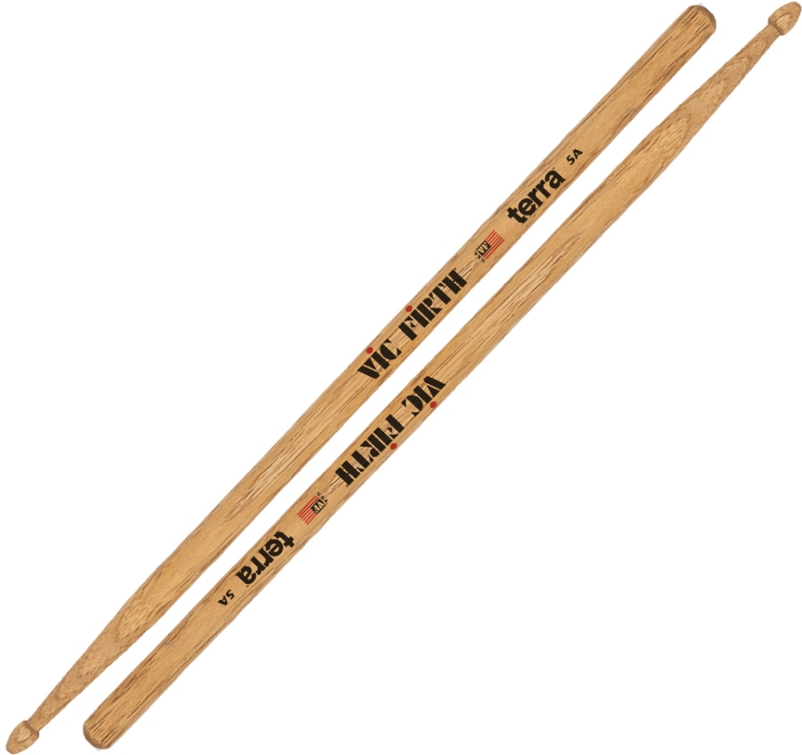 Genom att använda sin patenterade betsningsprocess får Vic Firth fram ådringarna i hickoryn på ett helt unikt sätt där mönster och look från stock till stock inte blir den andra lik. Terra-serien är tillverkade av Amerikansk Hickory och görs i fabriken i Newport, Maine med sedvanlig precision och minutiösta kontroller. Betsningsmetoden ger en mjuk och len yta med ett säkert grepp med en naturlig spelkänsla. Terra lyfter visuellt det material som trummisar runt om i världen förlitat sig på i decennier