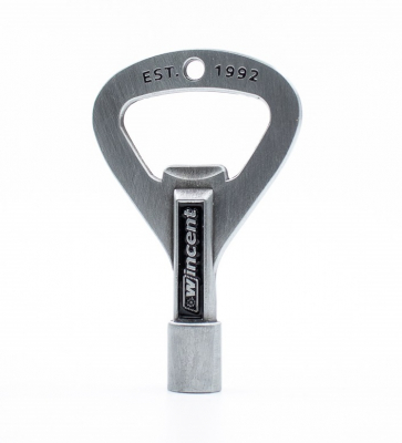 Wincent RockKey är en standard stämnyckel för trummor, nu även med kapsylöppnare. Kan fästas på nyckelring.