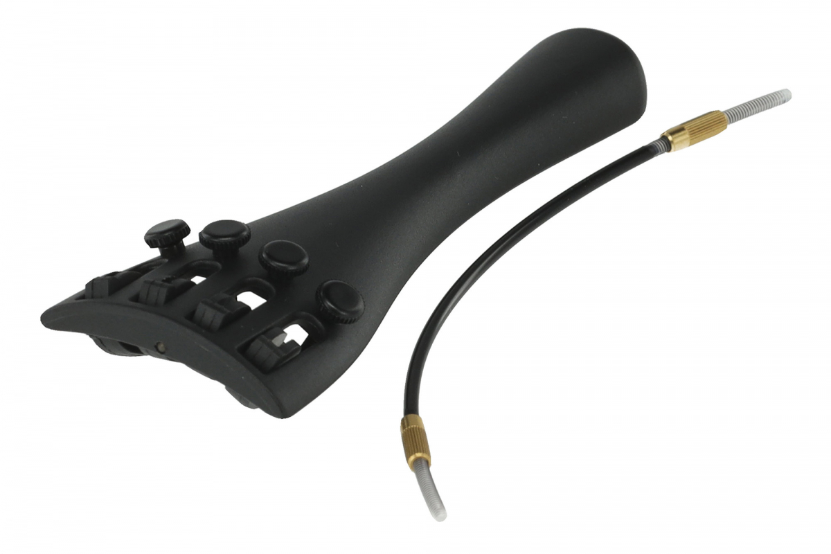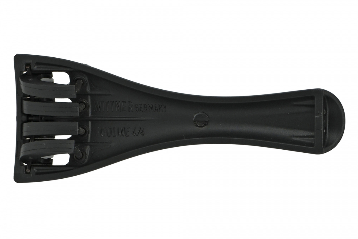 Stränghållare av hög kvalité från Wittner. Komplett med finstämmare och justerbar stränghållarsena (för att fästa stränghållaren på fiolen).