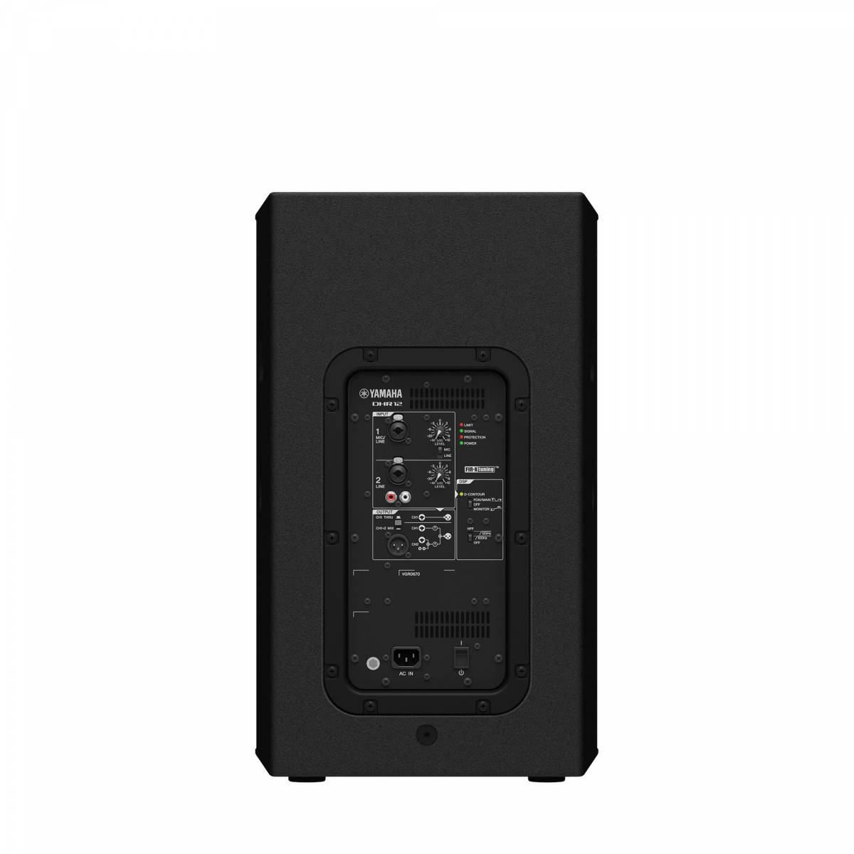 DHR-seriens högtalare har två ingångskanaler. CH1 har en kombinationsjack som accepterar både XLR och TRS, vilket gör det möjligt att ansluta antingen mikrofon- eller linjenivåsignaler. CH2 erbjuder två ingångsalternativ: en kombinationsjack för XLR eller TRS samt ett par RCA-ingångar för anslutning av CD-spelare eller andra stereokällor med linjenivå. Den inbyggda mixern gör det möjligt att välja mellan CH1+2 MIX för att blanda signalerna från CH1 och CH2, eller CH1 THRU för att endast skicka vidare signalen från CH1.