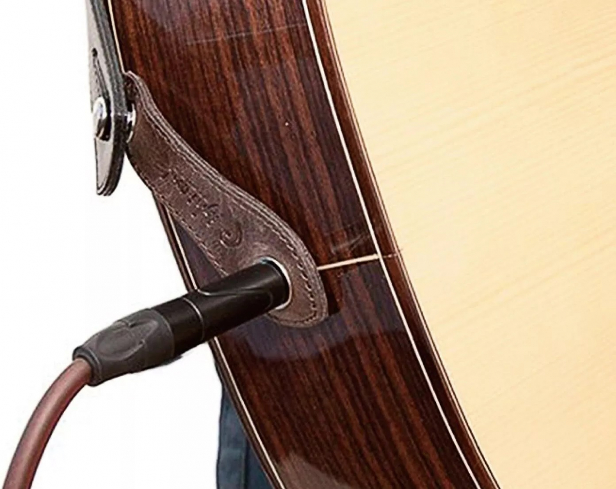 Smart länkrem för akustiska gitarrer som har inbyggt mikrofonsystem.