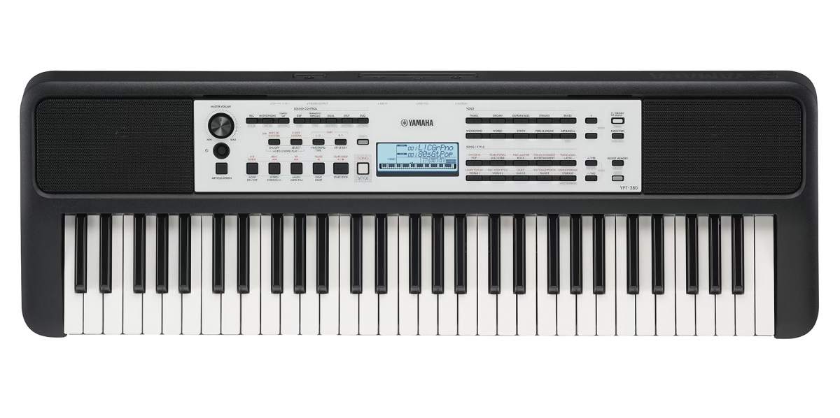 Keyboard från erkända Yamaha med 61 anslagskänsliga tangenter, stor ljudbank, inbyggt lektionssystem, USB-ljudkort och mycket mer. Väldigt kompetent klaviatur för den seriösa nybörjaren. YPT-380 är identisk med PSR-E383, förutom att den har silverfärgad front.