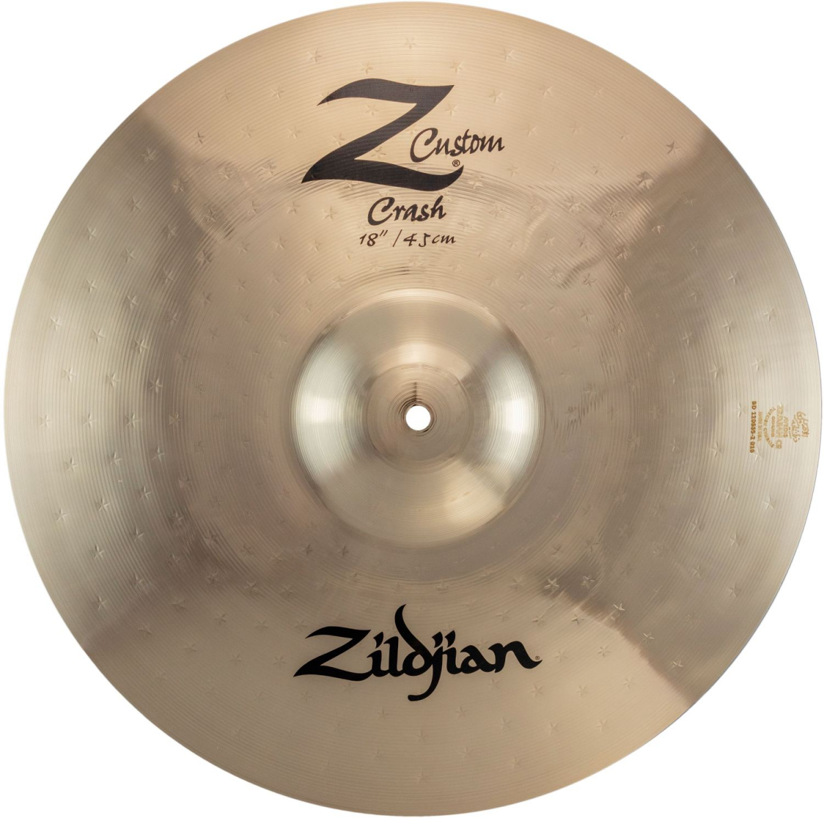 18 tum Z Custom crash, Zildjians Secret Family B20 Alloy, explosiv med tydligt och genomträngande anslag, brilliant ton, brilliant finish med klassiskt star pattern, perfekt för hårdrock. Crasharna är snabba, explosiva och genomträngande men utan att bli omusikaliska. Hårda och elaka men ändå med en dynamik och kropp. Dom öppnar sig på ett underbart sätt även vid svagare spel men utan att kvävas när man klappar på ordentligt.