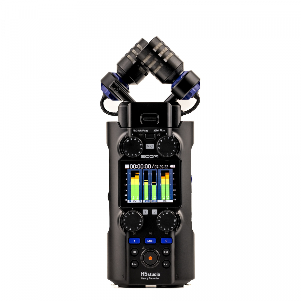 - The H5studio offers the best of both worlds with 32-bit float and dedicated gain knobs—no clipping and no need for post-production.