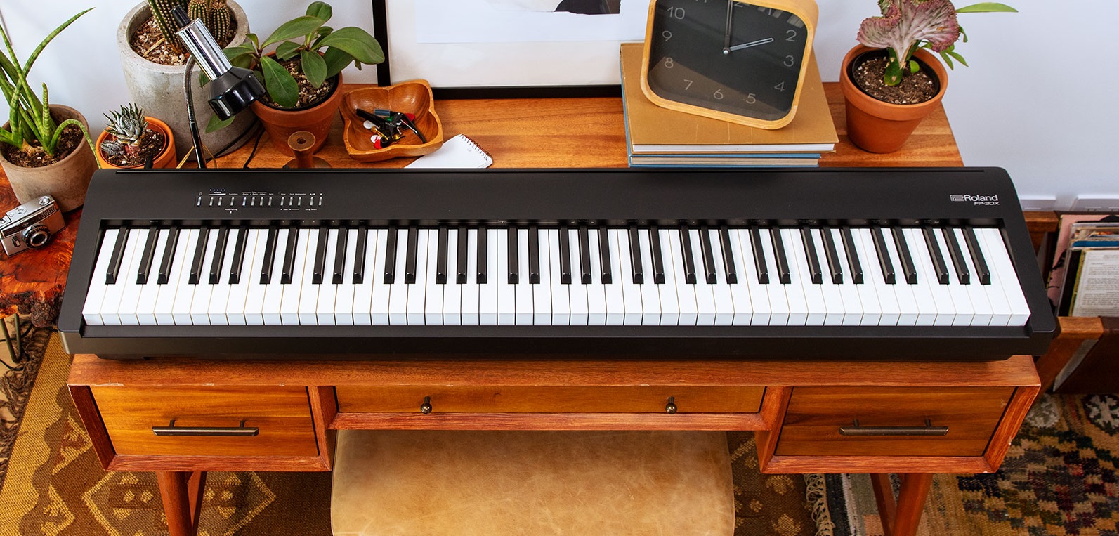 Vill du ha ett kompakt och lätt piano, kanske för flick-/pojkrummet eller om du har begränsat med utrymme. Roland har allt från den otroligt prisvärda instegsmodellen FP-10, som fortfarande har ett vägt klaviatur med bra spelkänsla och ljud av hög kvalité. Kombinera med en benställning för en stilren men ändå kompakt möbel, eller ställ den på ett krysstativ om du snabbt behöver flytta eller ställa undan pianot enkelt.